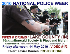 | NATIONAL POLICE WEEK . Washington DC . 9 - 15 May 2010 16th Annual Emerald Society & Pipeband March From ASSEMBLANCE on New Jersey Avenue between E and F Streets, NW, proceeding with THE MARCH on E Street to the National Law Enforcement Officers Memorial . Judiciary Square . NW, WDC . Friday, 14 May 2010 Elvert Xavier Barnes Photography . Videography . Writings . Ads _______________________________________________________________________________________________________________________ |
