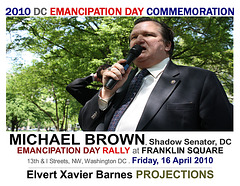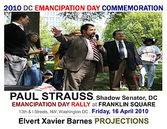 Organized by Anise Jenkins of Stand Up! for Democracy / Free DC In Coalition and Ayo Handy-Kendi of African American Holiday Association (AAHA) and in collaboration with Friends of DC Emancipation as well as other key sponsors the theme for the 2010 DC Emancipation Day Commemoration Rally & March was "To Honor the Ancestors & To Advocate for DC Statehood (Political Freedom). Click here to read my 21 April 2010 blog posting. |