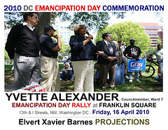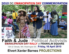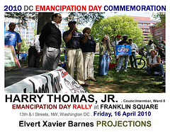 | DC EMANCIPATION DAY COMMEMORATION _________________________________________________________________________________________________________________________________________________________________________________ RALLY at Franklin Square at 13th & I Streets, NW, and MARCH to DC Historical Society at 801 K Street, NW, WASHINGTON DC . Friday, 16 April 2010 _____________________________________________________________________________________________________________________________________________________________________________ in connection with the SPRING RITUALS and EASTER DOES NOT MEAN TO ME, A BLACK MAN ... docu-projects Elvert Xavier Barnes Projections: photography . videography . writings . ads ______________________________________________________________________________________________________________________________________ |