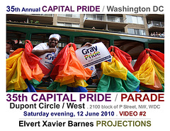 | 35th Annual Capital Pride 2010 / PARADE Washington DC . Saturday evening, 12 June 2010 Elvert Xavier Barnes Photography . Videography . Writings . Ads ____________________________________________________________________________________________________________________________________________________ |